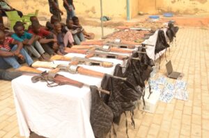 “Also arrested was one Mrs Nvou Michael, a 37-year-old female from Vom LGA, Plateau State, who was intercepted by operatives along Samminaka/Jos expressway, Kaduna State, in possession of 15 locally made rifles and 400 rounds of 7.62 x 39mm AK47 ammunition in a Toyota Hummer bus travelling from Jos, Plateau State to Kaduna State. Investigations revealed the suspect was an arms smuggler for some bandit groups in Kaduna State. Similarly, Police operatives arrested one Nuhu Yakubu, a 33-year-old male from Donga, Taraba State, while he was conveying 1,500 AK47 ammunition from Wukari to bandits in the Donga Forest.