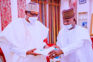 The All Progressives Congress (APC) presidential hopeful made the presentation when he visited Mr President at the Presidential Villa in Abuja on Thursday.