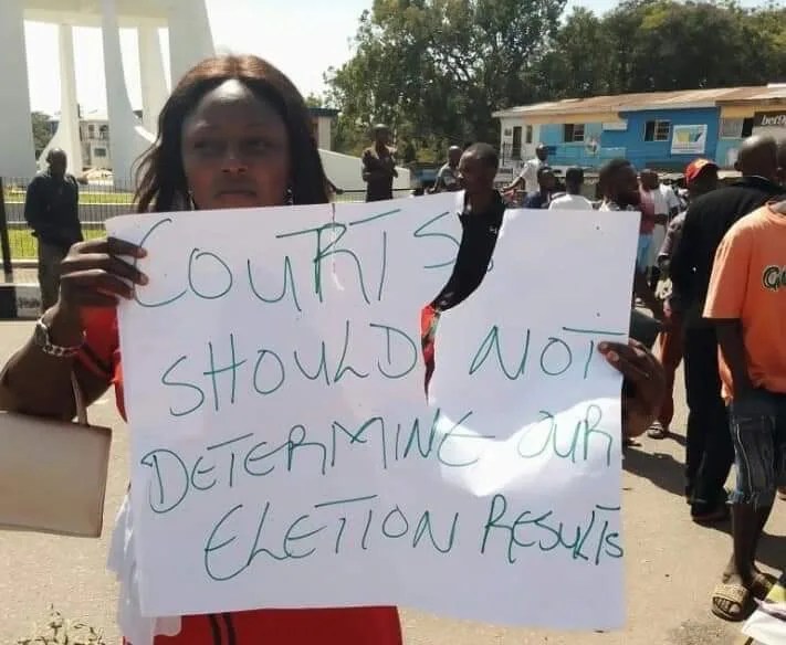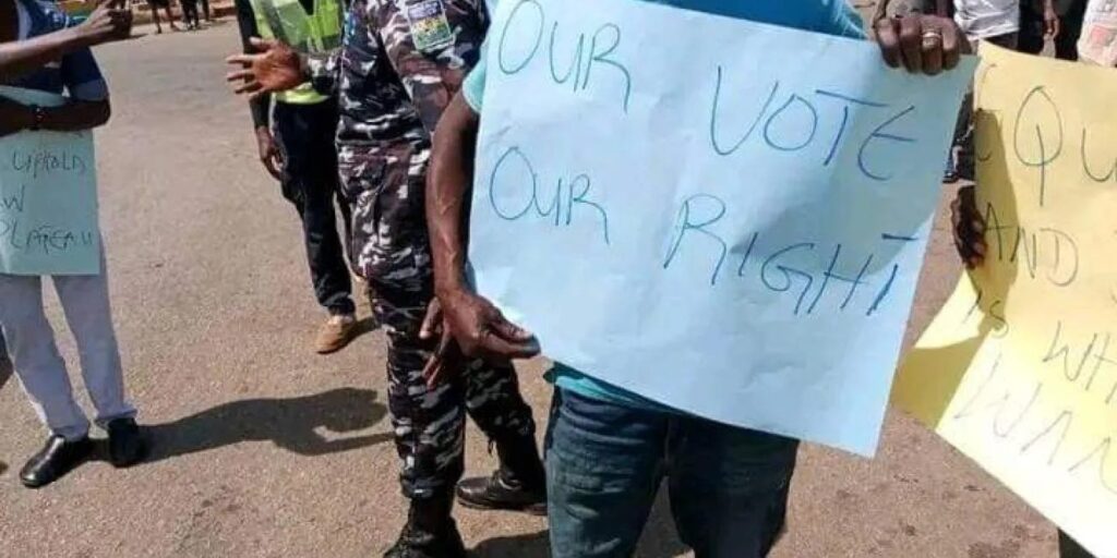 Protesters have been seen brandishing placards with diverse inscriptions, conveying messages such as “The ballot is supreme,” “Do not kill our democracy,” “PDP is alive,” “Return people’s mandate,” and “We want justice,” among others.