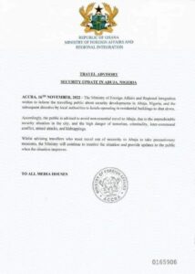 Home ยป Take Precautions Visiting Abuja, Ghana Advises Citizens.
